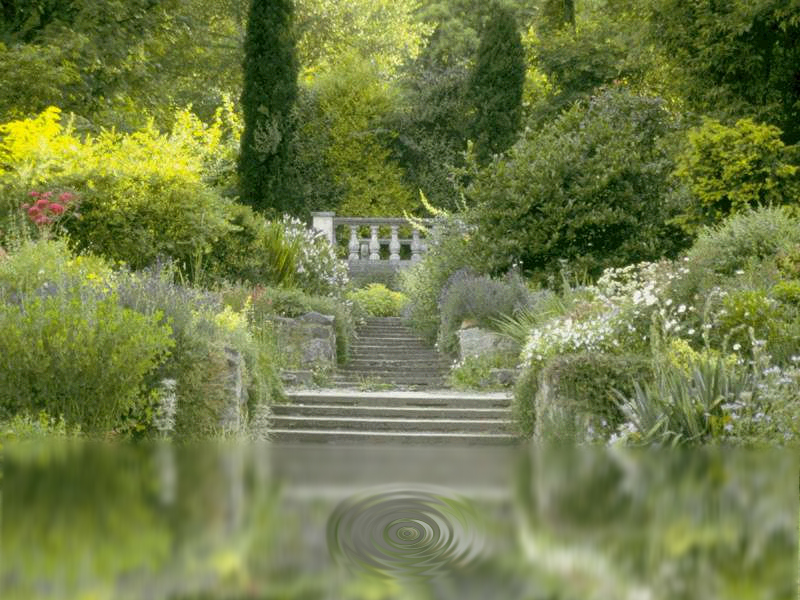 在本任务中,首先要通过调整画布大小和“多边形套索工具”绘制出水的选区,然后利用“反选”命令和“垂直翻转”选区操作得到倒影图像,再利用“波纹”滤镜和“动感模糊”滤镜对倒影图像进行修饰,最后利用“水波”滤镜模拟制作出水波效果,通过对图层透明度的调整得到最终效果。