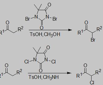 图1.1 二卤海因与羰基化合物的A-卤代反应