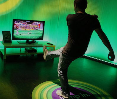 图1.1 玩家通过Kinect进行足球游戏示意图