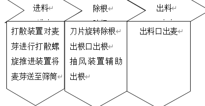 麦芽除根机是一类用于啤酒生产工艺过程中一道主要工序的除根专用型机器。它的系统组成结构较简单、设计比较合理、方便除根的加工、使用方式简便、除根效率高、除根效果较好、不仅能拥有有效地延长除根工序的下一道工序-麦芽粉碎机的使用寿命、提高了生产效率、而且还能改善啤酒品质、提高高品质啤酒的产量等特点,所以,具有非常好的使用价值。除根机功能如下图示: