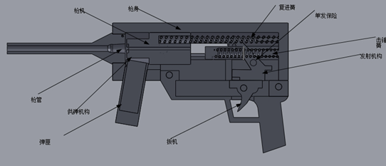 以下是本次设计的冲锋枪总体组成图,如图2.1所示