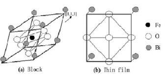 目前有上百种的铁磁电体已经被发现,而且现在还不断的发现新的材料体系,以复杂结构的氧化物居多[4]。虽然目前发现了众多的铁磁电材料,但是能够真正得到实际中应用的材料却是少之又少。而BiFeO3则是其中最有可能得到应用的材料。BiFeO3铁磁电材料中最为典型的,具有较高的居里温度(1083K)和尼尔温度(675K),由于在室温下同时具有铁电性和磁性而引起科学家极大的关注[5]。