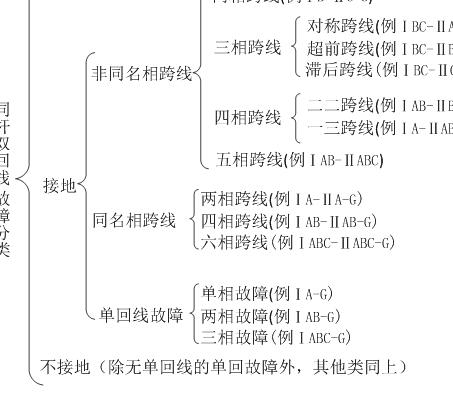 同杆双回线的两回线距离较近,故可能发生线间短路,在双回线故障中,仅在一回线上发生的故障称为单回线故障,两回线上同时发生的故障称为跨线故障。同杆双回线的故障类型多达120种,故障分类如图1.1所示。其中,同名相跨线故障指的是两回线的故障相完全相同,种类较少。非同名相故障指的是两回线的故障相不完全相同,种类较多。